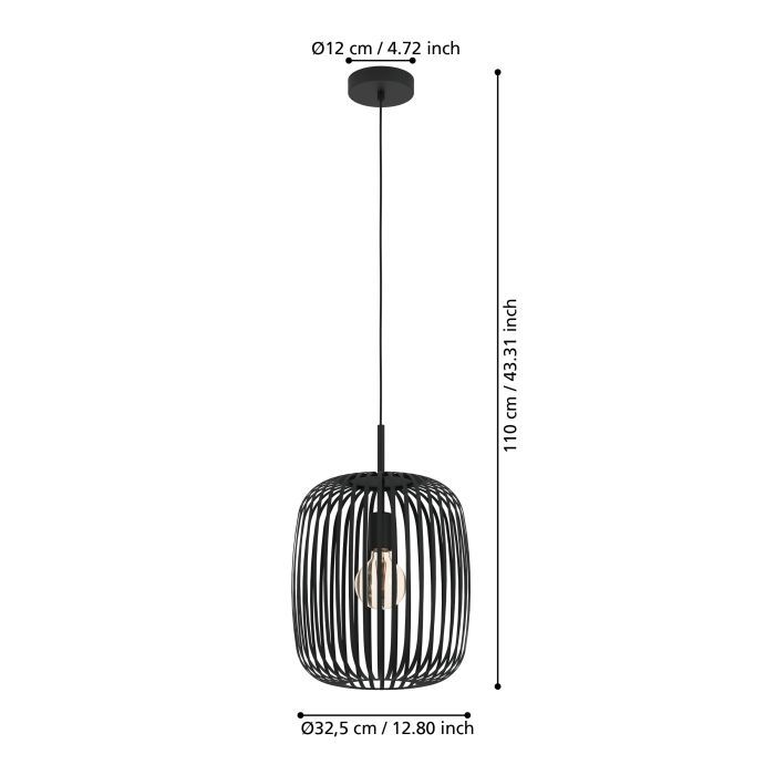 Κρεμαστό Φωτιστικό 32,5xH110cm Μονόφωτο Μαύρο Πλέγμα 1xE27 Eglo Romazzina 900494