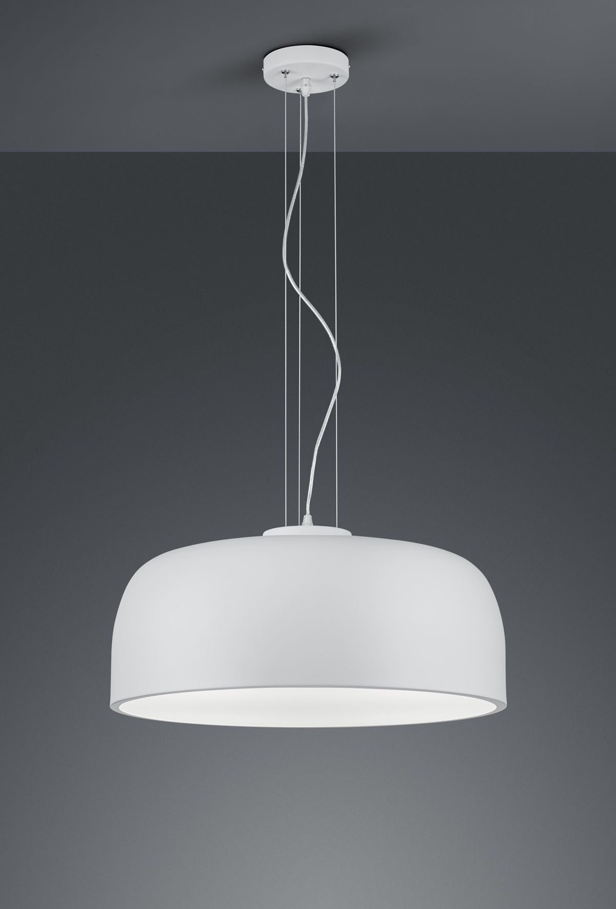 The simple matt-white colour scheme underlines the modern character of the pendant light and can be integrated into numerous colour concepts.