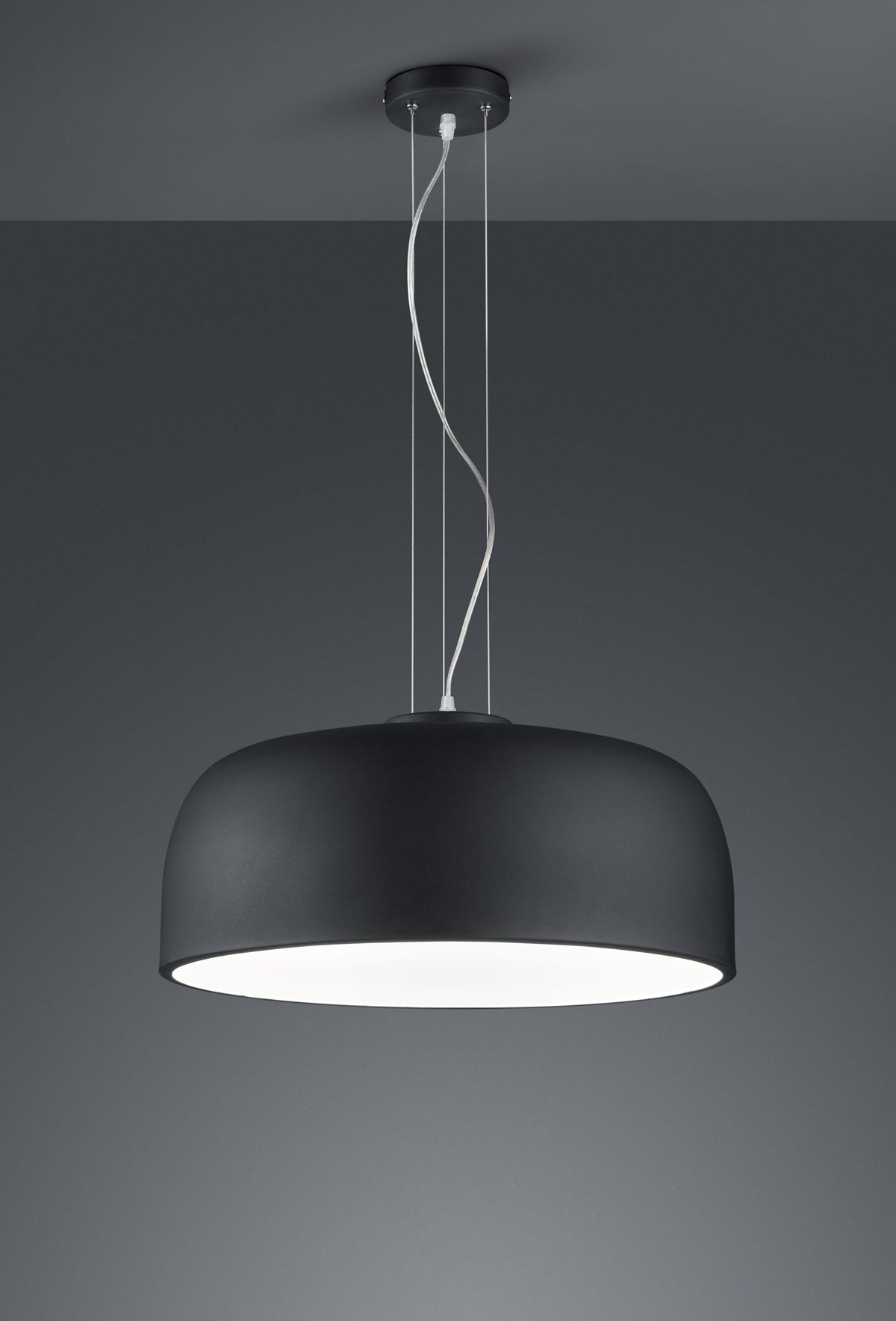 The simple black-and-white colour scheme underlines the modern character of the pendant light and can be integrated into numerous colour concepts.