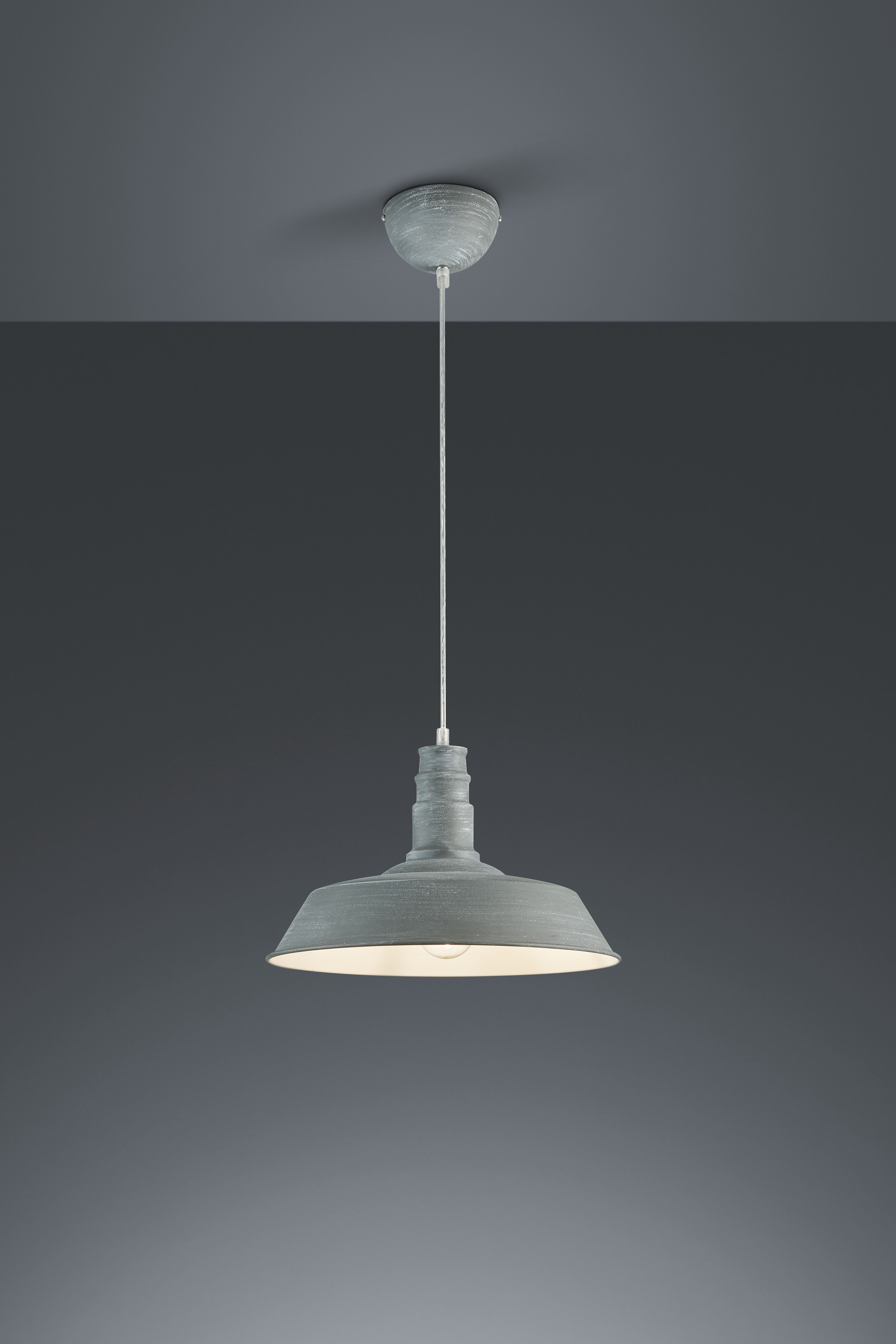 The concrete-colored model of the pendant light emphasizes the industrial look and fits perfectly into modern furnishing styles.