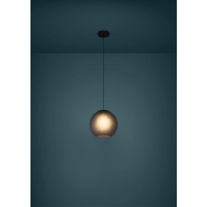 Κρεμαστό Φωτιστικό D30xH150cm Μονόφωτο Μπάλα 1xE27 Μαύρο Μέταλλο-Γκρι Γυαλί Eglo Arangona 390212