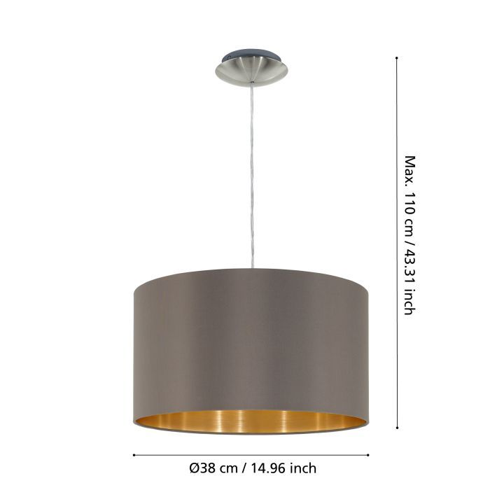 Κρεμαστό Φωτιστικό D38xH110cm Μονόφωτο 1xE27 Ύφασμα Καπουτσίνο Eglo Maserlo 31603