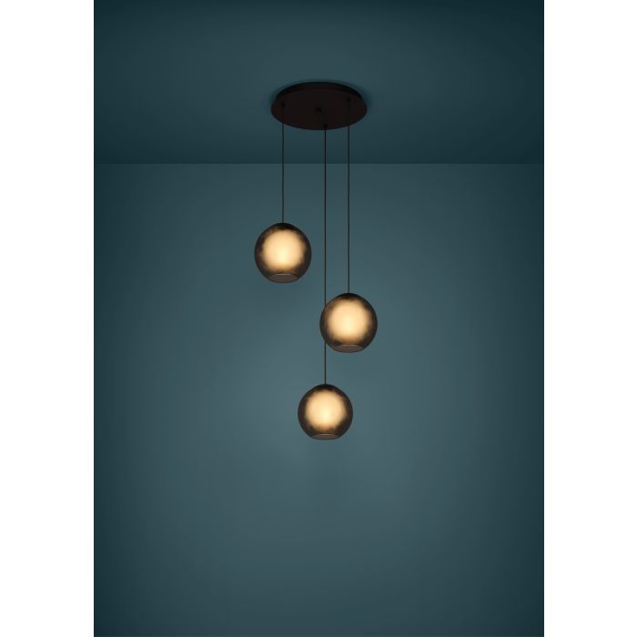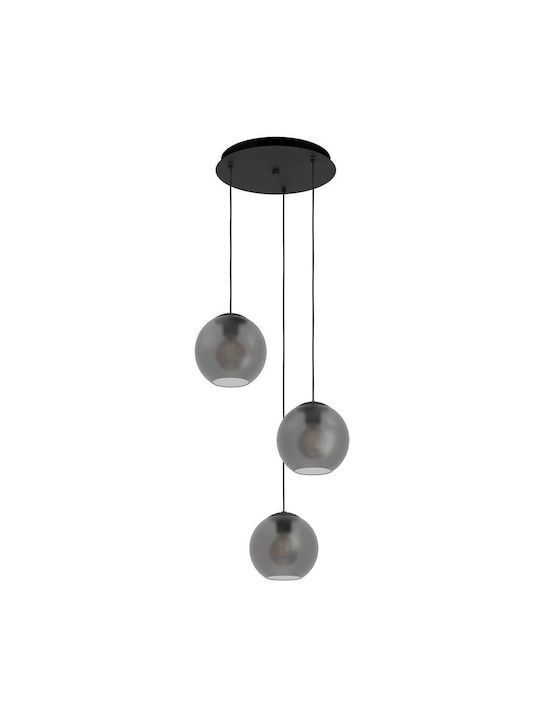 Κρεμαστό Φωτιστικό D45,5xH150cm Τρίφωτη Ροζέτα 3xE27 Μαύρο Μέταλλο-Γκρι Γυαλί Eglo Arangona Eglo Arangona 390213