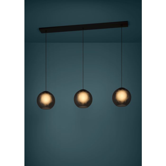 Κρεμαστό Φωτιστικό L125,5xH150cm Τρίφωτη Ράγα 3xE27 Μαύρο Μέταλλο-Γκρι Γυαλί Eglo Arangona 390214