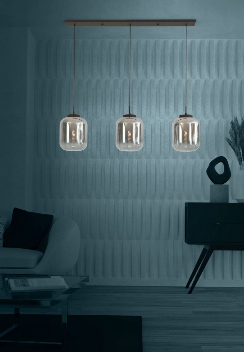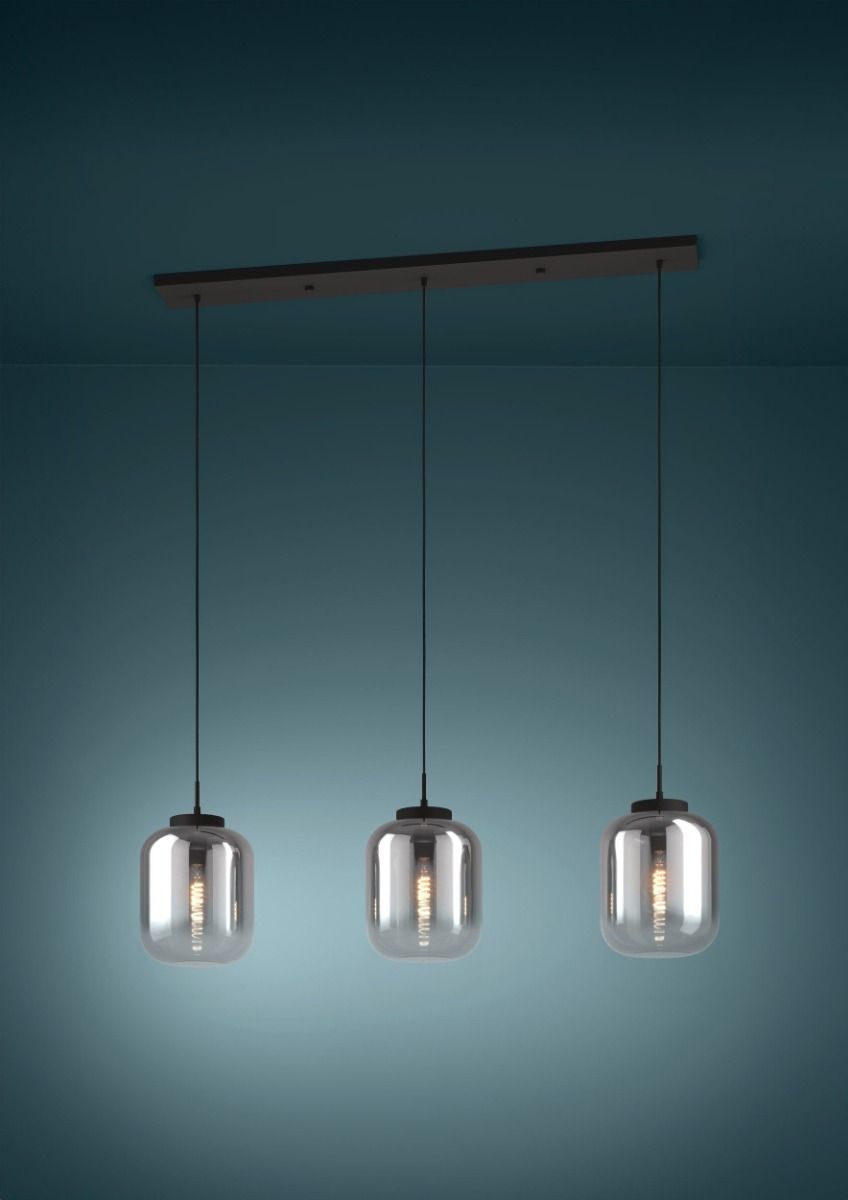 Κρεμαστό Φωτιστικό L126xH150cm Τρίφωτο Ράγα 3xE27 Μαύρο Μέταλλο-Γυαλί Eglo Bulciago 390104
