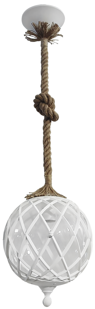 Κρεμαστό φωτιστικό πλαστικό με πολυκαρμπονάτο γυαλί ,λευκό με σχοινί και κόμπο LP-530K 1L ROPE UT-WHITE