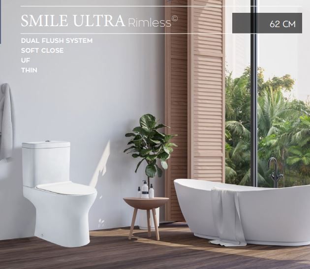 Λεκάνη Επιδαπέδια Σετ Χ.Π Π.Σ Κάλυμμα Slim-Soft Close-Αποσπώμενο Προβολή 62 cm Ceramita Smile Ultra Rimless