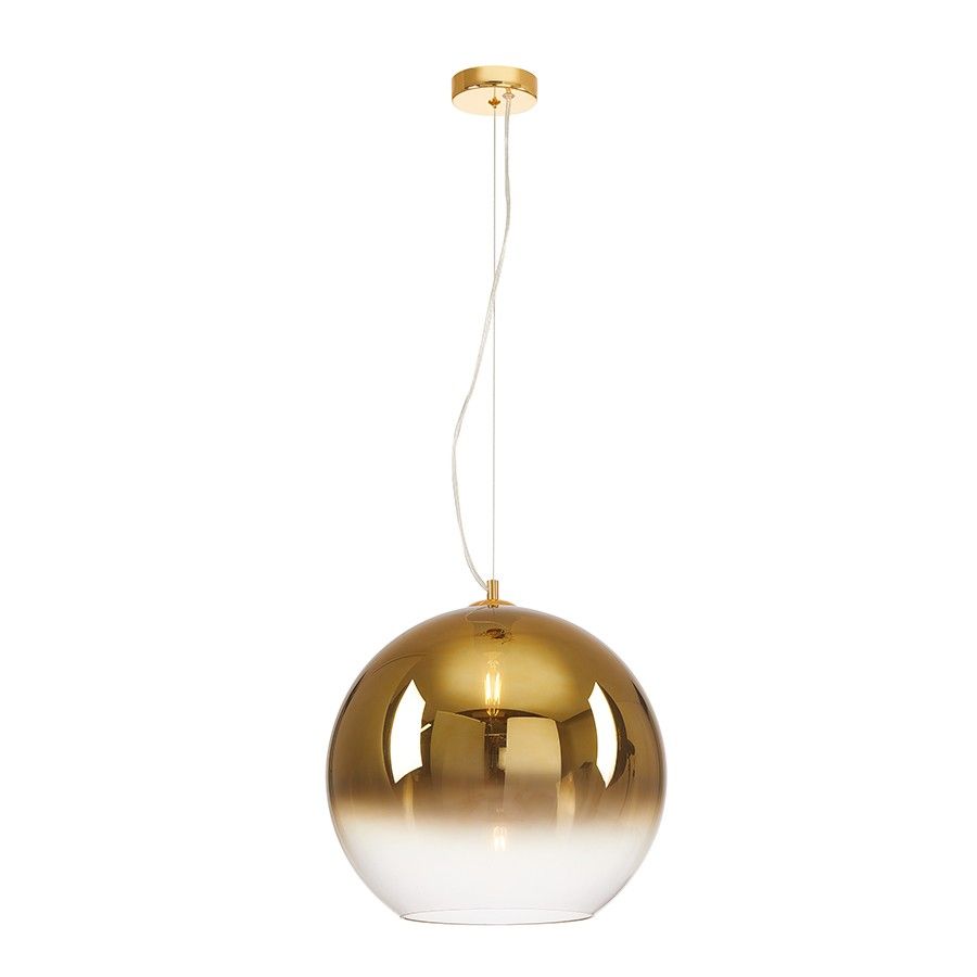 Μονόφωτο-κρεμαστό φωτιστικό κατασκευασμένο από χειροποίητο γυαλί χρυσό ντεγκραντέ και μεταλλική βάση σε χρυσό.Ύψος: 120 εκ.Διάμετρος γυαλιού: 40 εκ.Λαμπτήρες: 1 τεμ.Τύπος Λαμπτήρα:E27Watt:60w- ΥΨΟΣ: 160 cm