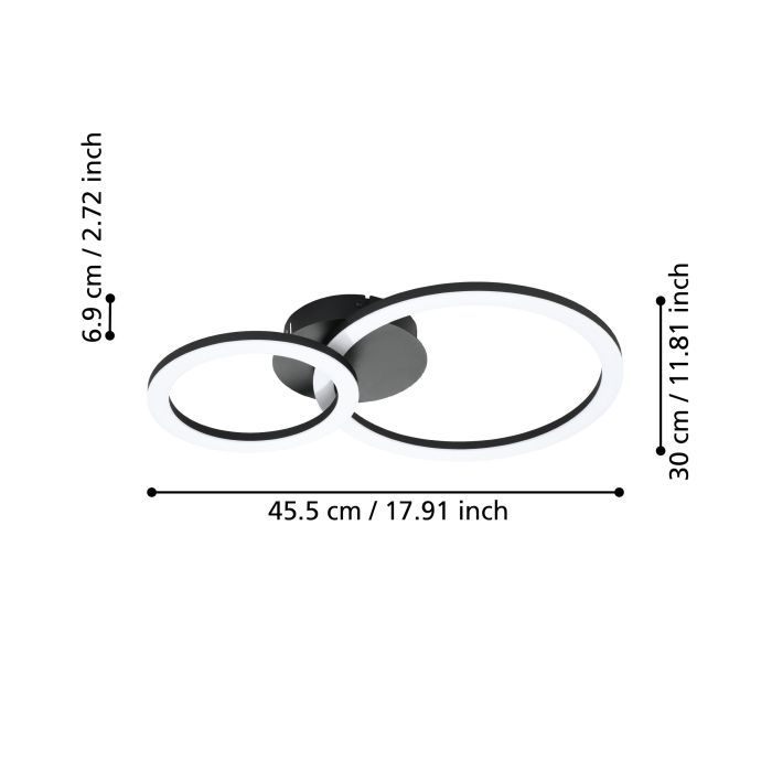 Μοντέρνα πλαφονιέρα οροφής της Eglo σε μαύρο χρώμα, από μέταλλο.