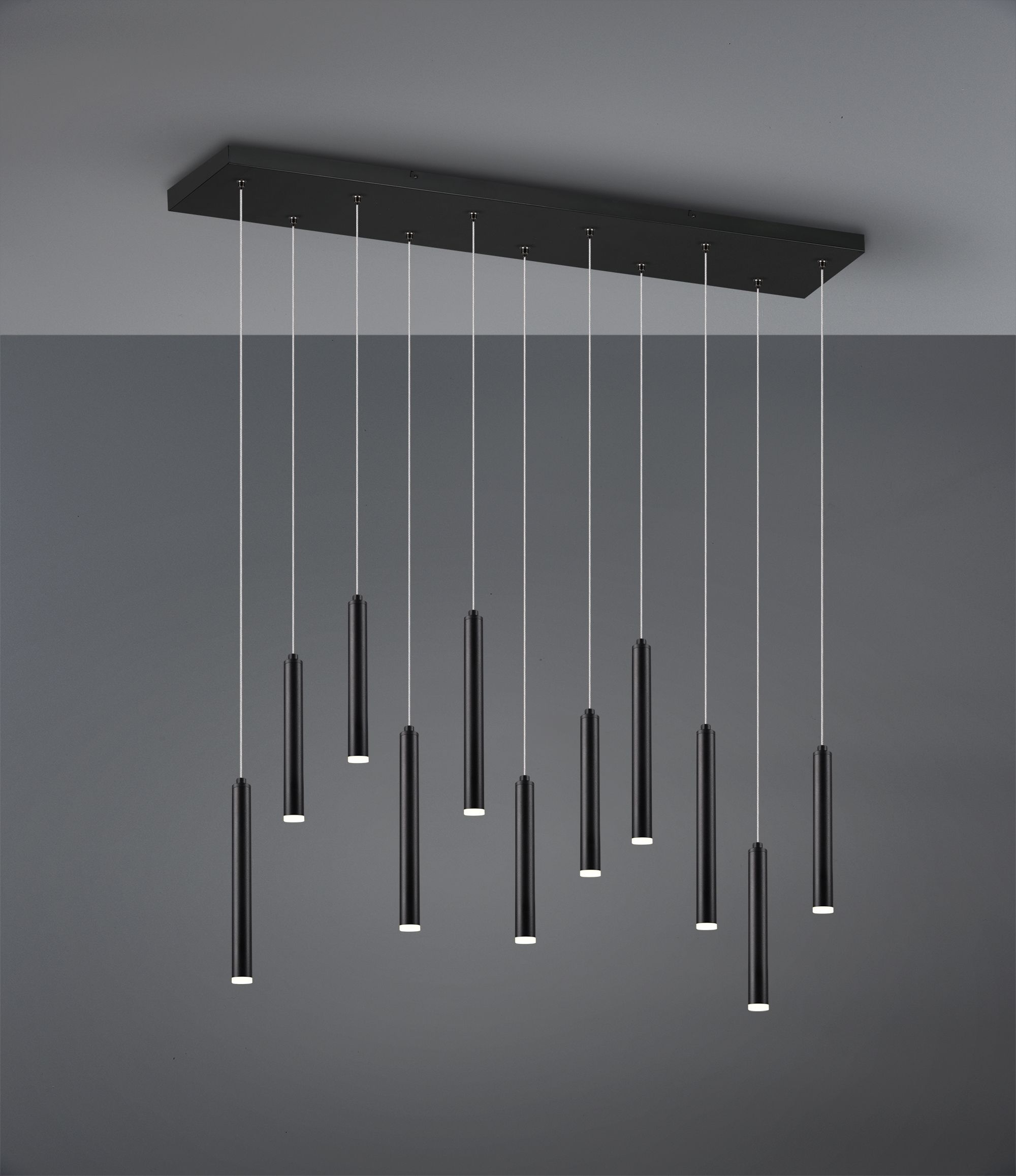 Μοντέρνο Κρεμαστό Φωτιστικό Μαύρο Ματ Ράγα L115xH150cm Led 11x2,8w 3000K 11x350lm Led Switch Dimmer Trio Lighting Tubular 321611132