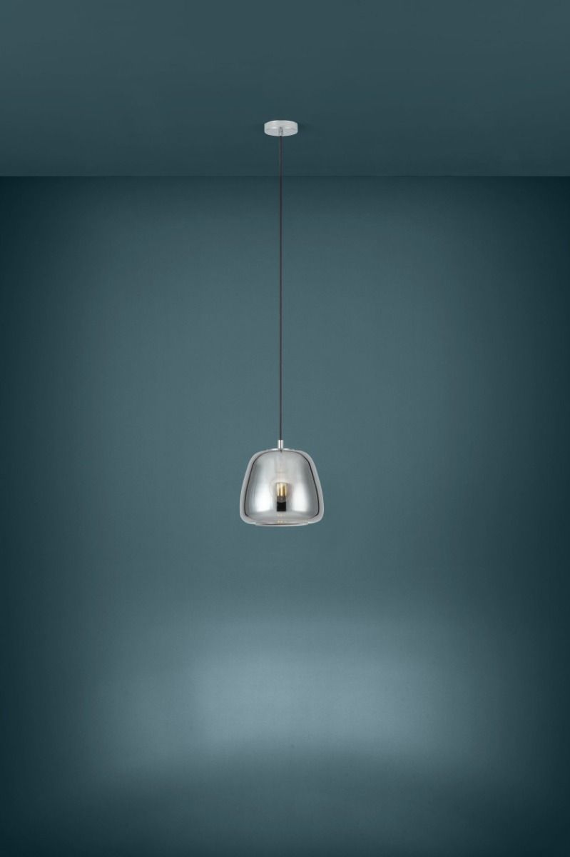 Μονόφωτο κρεμαστό φωτιστικό από την εταιρεία Eglo σε ασημί χρώμα, με υποδοχή για έναν λαμπτήρα και ντουί E27.