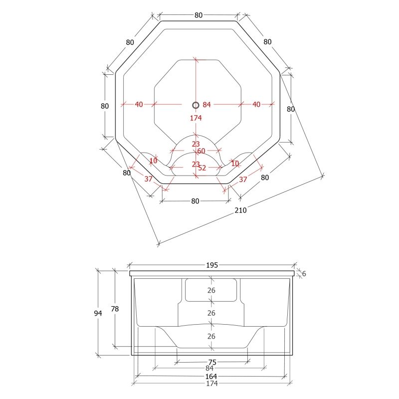 Μπανιέρα Υδρομασάζ Ακρυλική 195x195cm 6 Ατόμων 1000lt Sanitec Spa Medusa