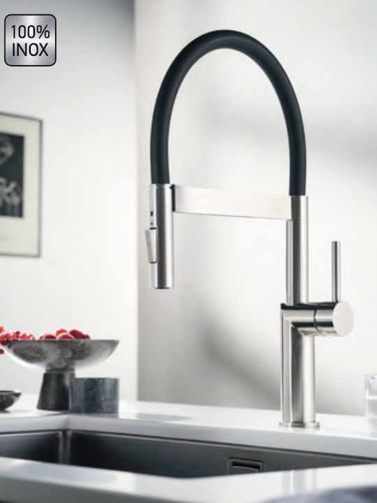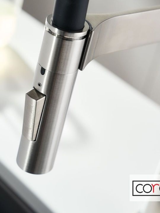 Μπαταρία Κουζίνας Αποσπώμενο Ντους με Μαγνήτη Επαναφοράς, 2 Λειτουργιών Shower-Spray Cora Griffon Inox 316L 63640-111