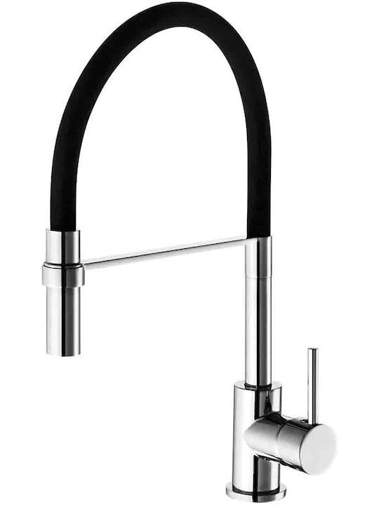 Μπαταρία Νεροχύτη Αναμεικτική Εύκαμπτο Σωλήνα Chrome-Μαύρο Sanitec Flex 00-02-00246