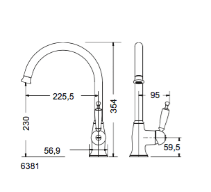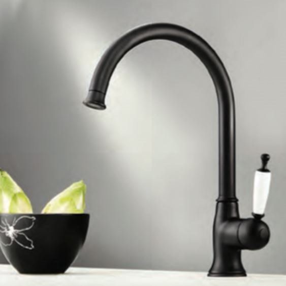 Μπαταρία Νεροχύτη Κουζίνας Retro Μαύρο ματ/ Λευκό Πορσελανάκι Bugnatese Oxford 6381-400