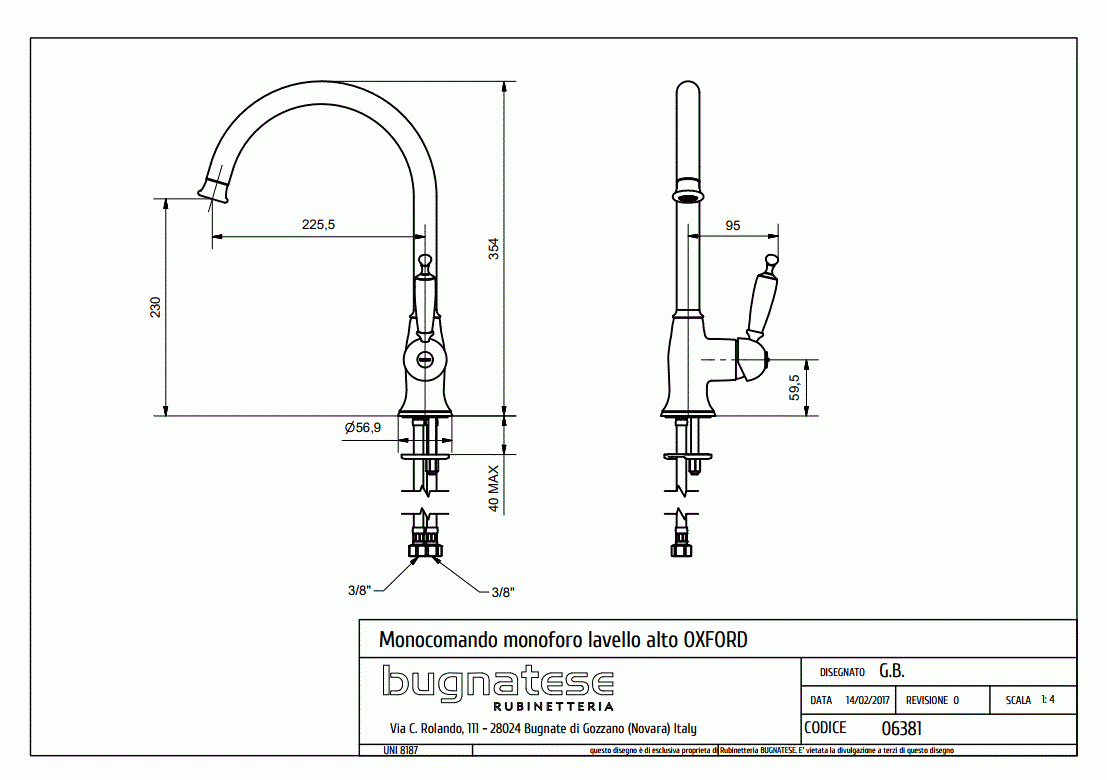 Μπαταρία Νεροχύτη Κουζίνας Oxford Bugnatese Chrome 6381-100