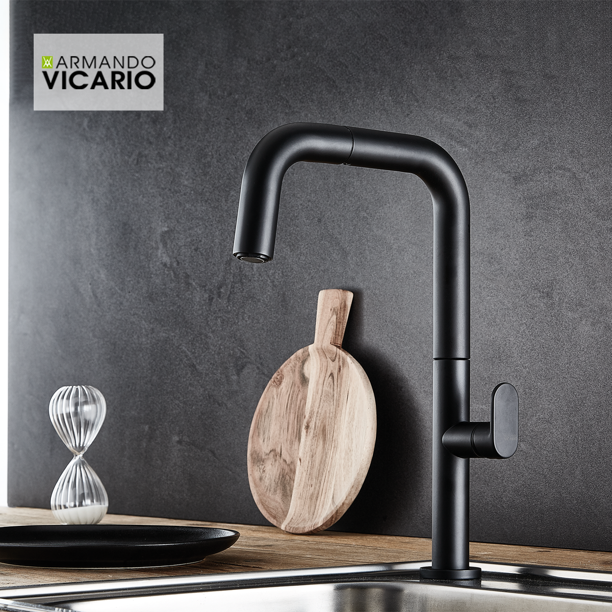 Μπαταρία Νεροχύτη Με Συρόμενο Ντους Μαύρο Ματ Armando Vicario Eva 400746-400