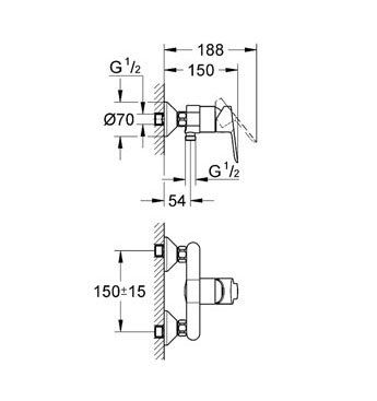 Μπαταρία Ντουσιέρας Σώμα Αναμεικτική Χρωμέ Grohe Bauloop 32816