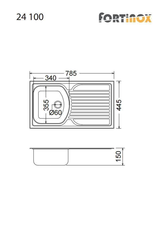 Νεροχύτης Κουζίνας Ανοξείδωτος Valley 78,5x44,5 Fortinox Inox Λείο 24100-110