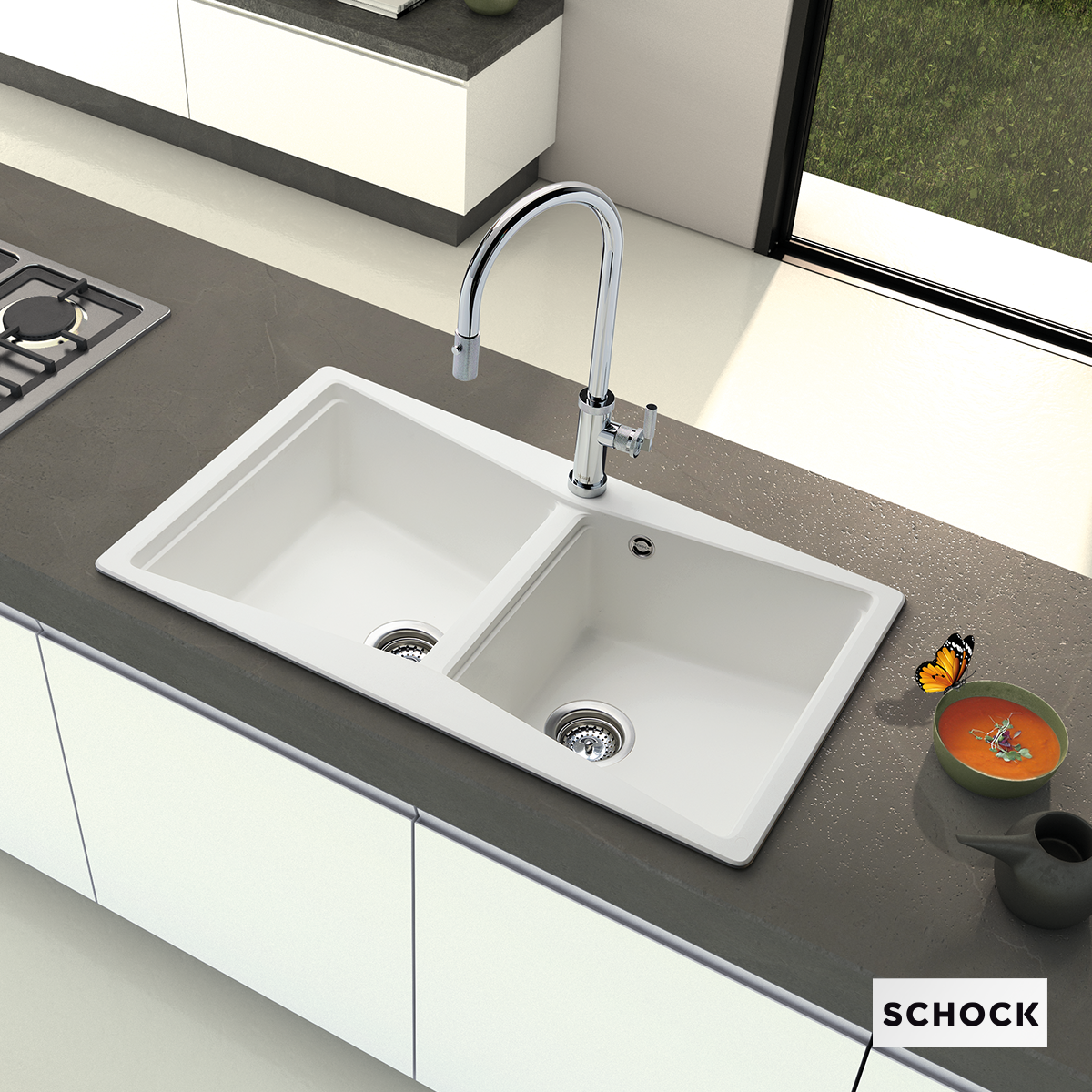 Νεροχύτης Κουζίνας Γρανίτη Element 86x50 Schock Cristalite Concrete Granite 31290-1451