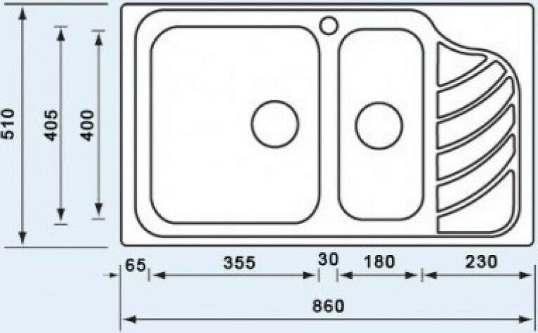 Διαστάσεις Νεροχύτη: 86 cm x 51 εκ.