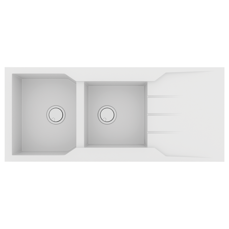 Νεροχύτης Κουζίνας Γρανίτης 116x50cm Ένθετος Eρμάριο 80cm 2 Γούρνες & Ποδιά Sanitec Ultra Granite 801-30-Bianco