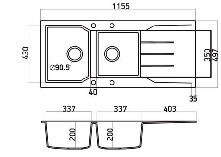 Εργονομικός αντιστρεφόμενος σχεδιασμός με 2 ανόμοιες γούρνες, επιφάνεια αποστράγγισης & άνετο περιθώριο για επιπλέον τοποθέτηση dispenser.