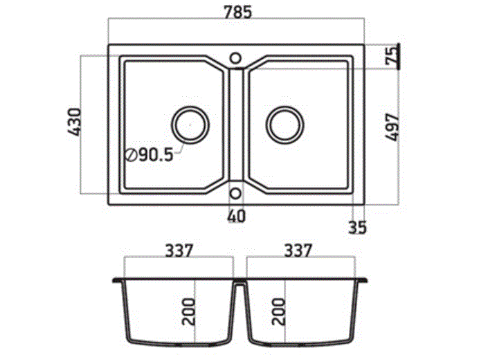 Νεροχύτης Κουζίνας Γρανίτης 79*50 εκ. Ένθετος ερμάριο 80 εκ. Χρώμα Grafite δύο γούρνες Sanitec 806