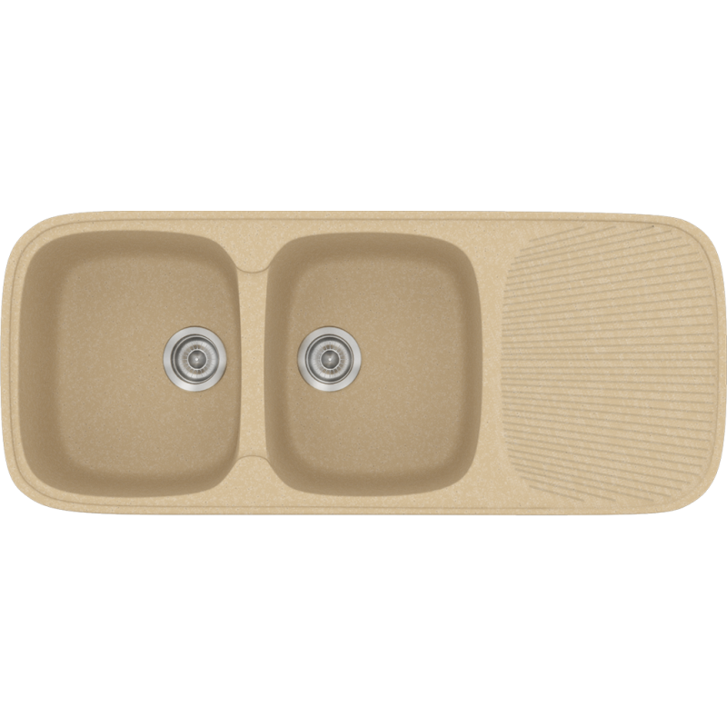 Νεροχύτης Κουζίνας Συνθετικός 117*50 εκ. 2 Γούρνες+Ποδιά Χρώμα Granite Cappuccino Ένθετος σε ερμάριο 80 εκ. Sanitec Classic 300