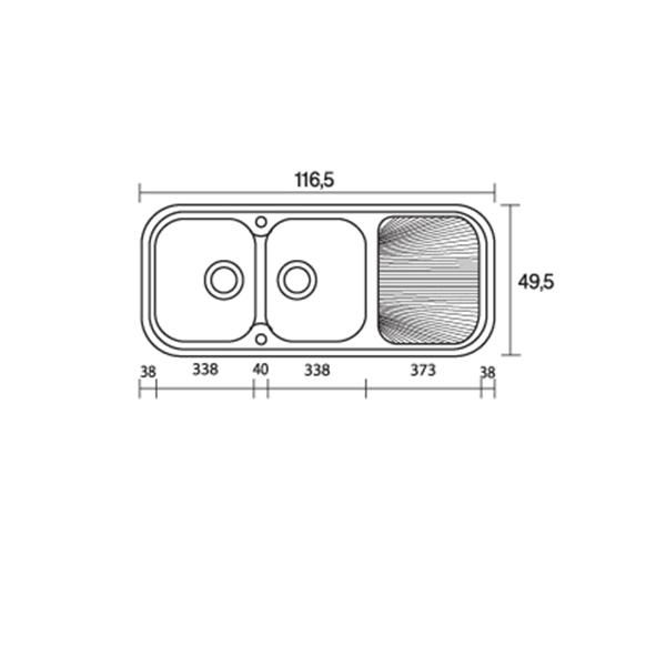 Περιγραφή: Νεροχύτης ένθετος αντιστρεφόμενος με 2 γούρνες & Ποδιά