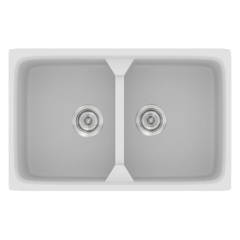 Νεροχύτης Κουζίνας Συνθετικός 78x51cm 2 Γούρνες Ένθετος Eρμάριο 80cm Sanitec Classic 318-00-White