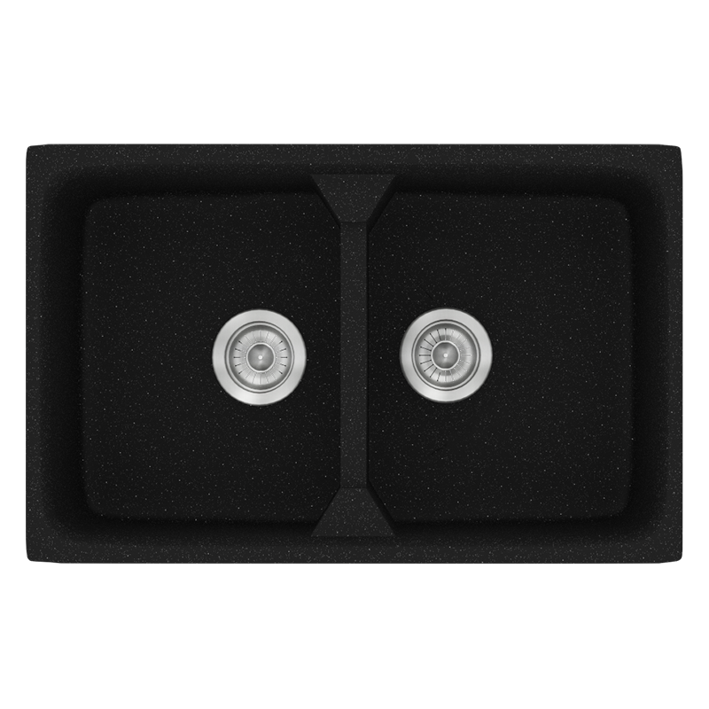 Νεροχύτης Κουζίνας Συνθετικός 78x51cm 2 Γούρνες Ένθετος Eρμάριο 80cm Sanitec Classic 318-22-Metallic-Space