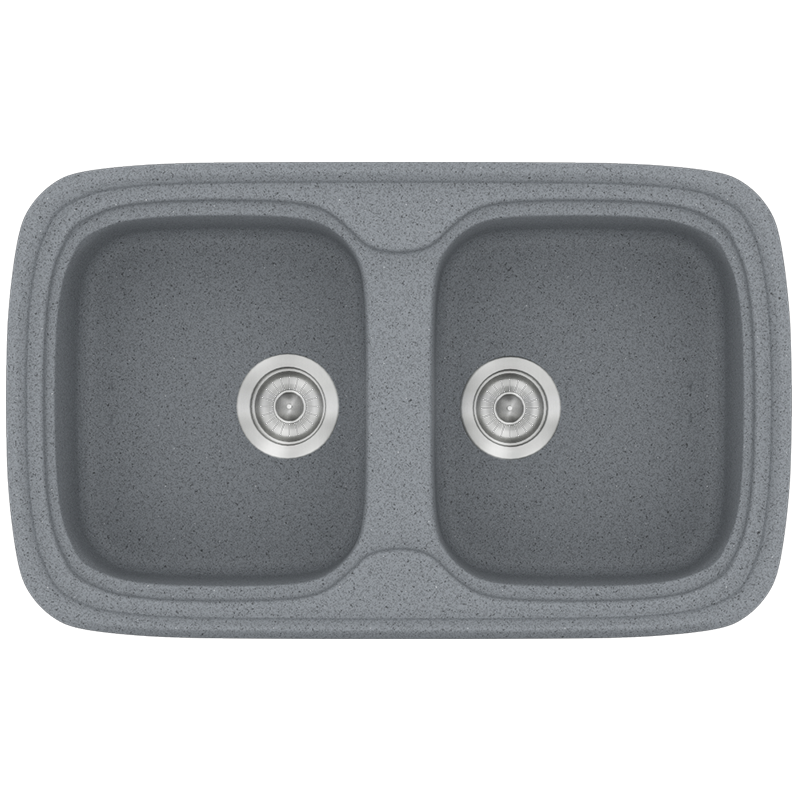 Νεροχύτης Κουζίνας Συνθετικός 82*50 εκ.2 Γούρνες Metallic Silver Ένθετος Eρμάριο 80 εκ.Sanitec Premium 312-17