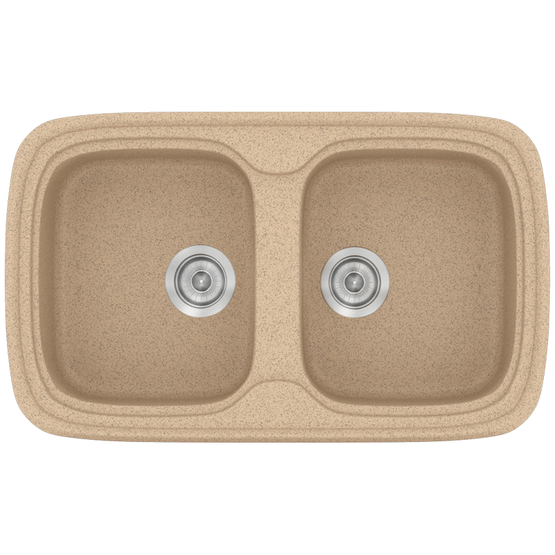 Νεροχύτης Κουζίνας Συνθετικός 82x50 εκ.2 Γούρνες Granite Beige Ένθετος Eρμάριο 80 εκ.Sanitec Premium 312-10