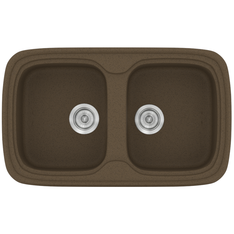 Νεροχύτης Κουζίνας Συνθετικός 82x50 εκ.2 Γούρνες Granite Rust Ένθετος Eρμάριο 80 εκ.Sanitec Premium 312-41