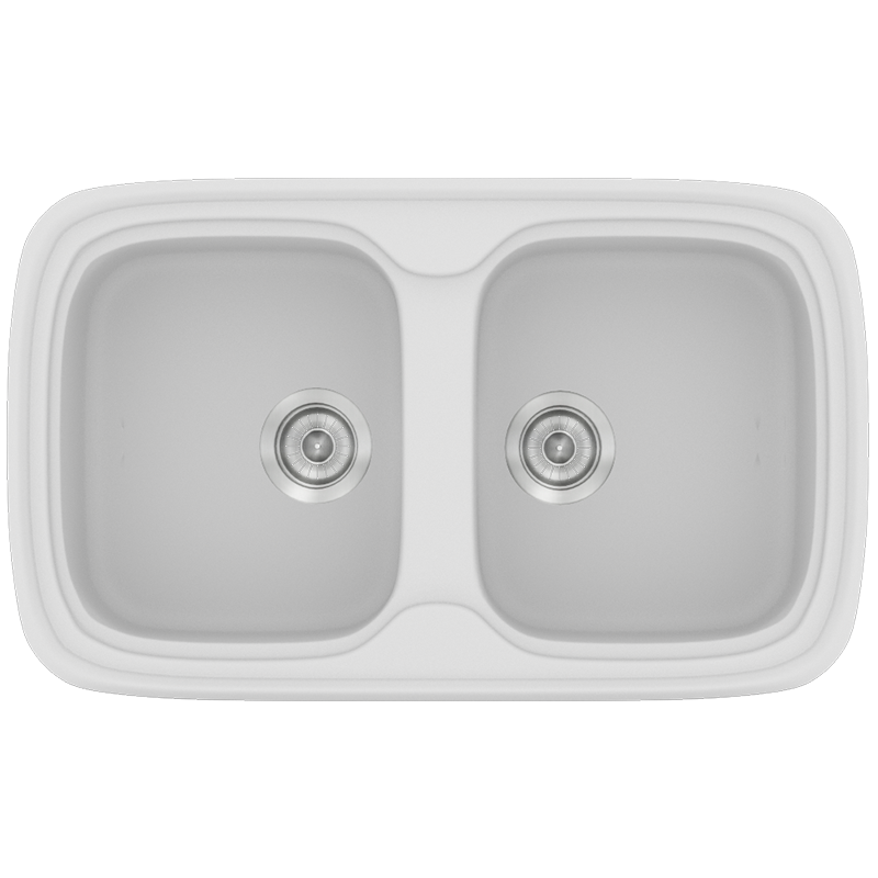 Νεροχύτης Κουζίνας Συνθετικός 82x50 εκ.2 Γούρνες White Ένθετος Eρμάριο 80 εκ.Sanitec Premium 312-00