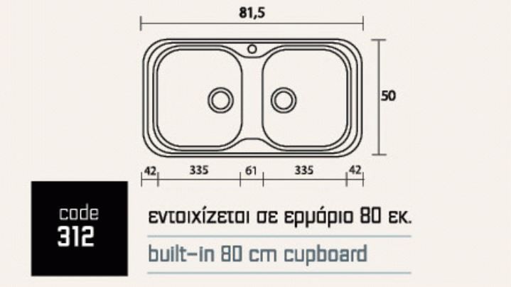 Περιγραφή: Νεροχύτης ένθετος αντιστρεφόμενος με 2 γούρνες