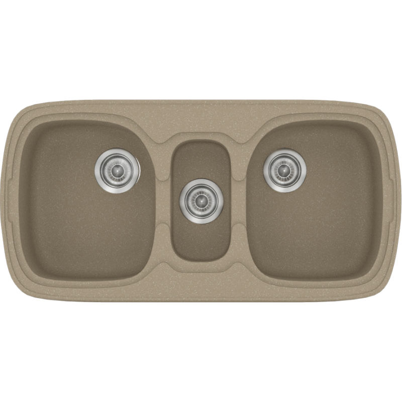 Νεροχύτης Κουζίνας Συνθετικός 97x51cm Ένθετος σε ερμάριο 100cm τρεις γούρνες Sanitec Classic 303-42-Granite-Taupe