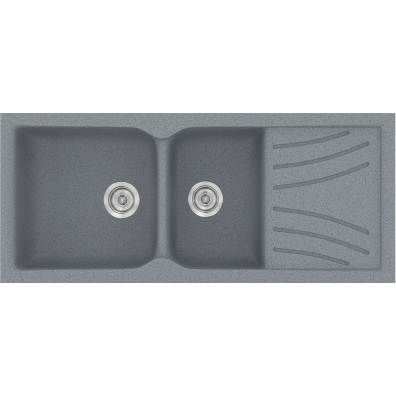 Νεροχύτης Κουζίνας Συνθετικός Metallic Silver 115*50 εκ. Ένθετος Eρμάριο 80 εκ. Δύο γούρνες & Ποδιά Sanitec Electric 323