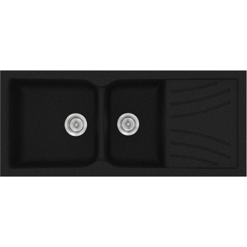 Νεροχύτης Κουζίνας Συνθετικός Metallic Space 115*50 εκ. Ένθετος Eρμάριο 80 εκ. Δύο γούρνες & Ποδιά Sanitec Electric 323