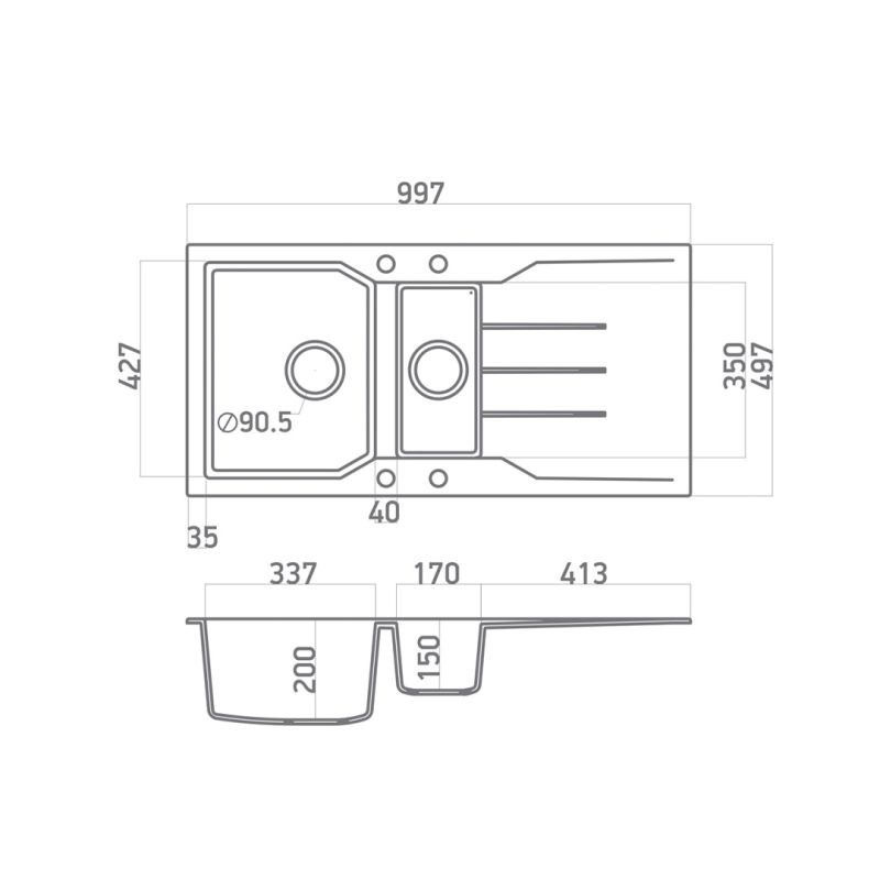Νεροχύτης Κουζίνας 100x50cm Ένθετος σε ερμάριο 60cm Sanitec Ultra Granite 802-33-Nero