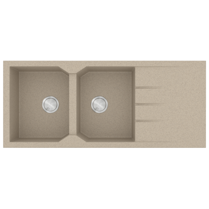 Νεροχύτης Κουζίνας 116x50cm Ένθετος Eρμάριο 80cm Δύο Γούρνες & Ποδιά Sanitec Ultra Granite 800-32-Sabbia