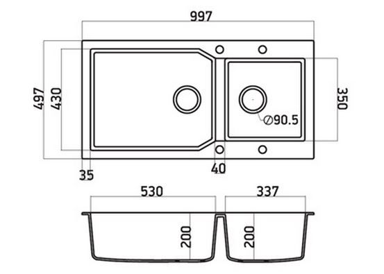 Εντοιχίζεται σε ερμάριο 100cm και συνοδεύεται από βαλβίδες αποχέτευσης με σύστημα υπερχείλισης & τα αντίστοιχα σιφόν.