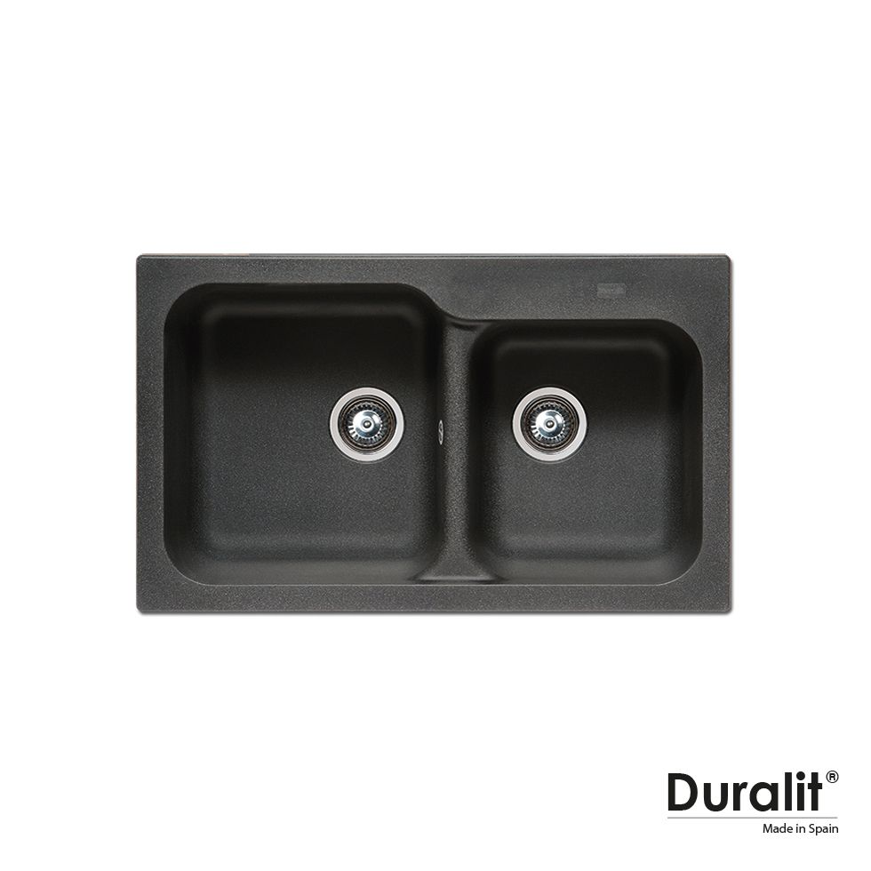 Νεροχύτης Συνθετικός Ένθετος 83x50cm 2 γούρνες για ερμάριο 80 εκ.Graphite Duralit KZ200-420