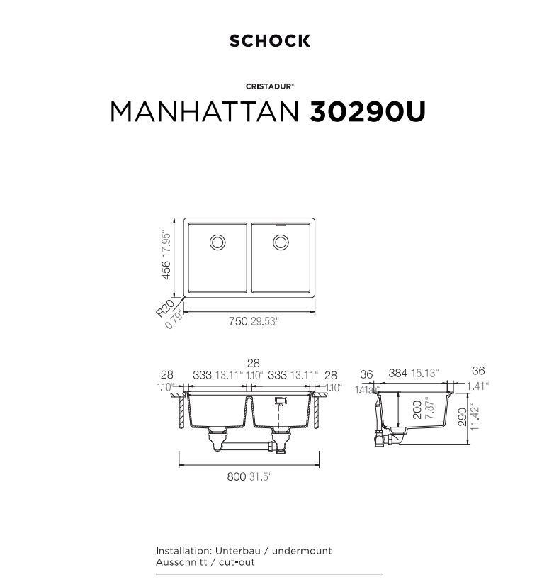 Νεροχύτης Κουζίνας Γρανίτη Manhattan Υποκαθήμενος 75x45,6 Schock Cristalite Concrete Granite 30290U-1451