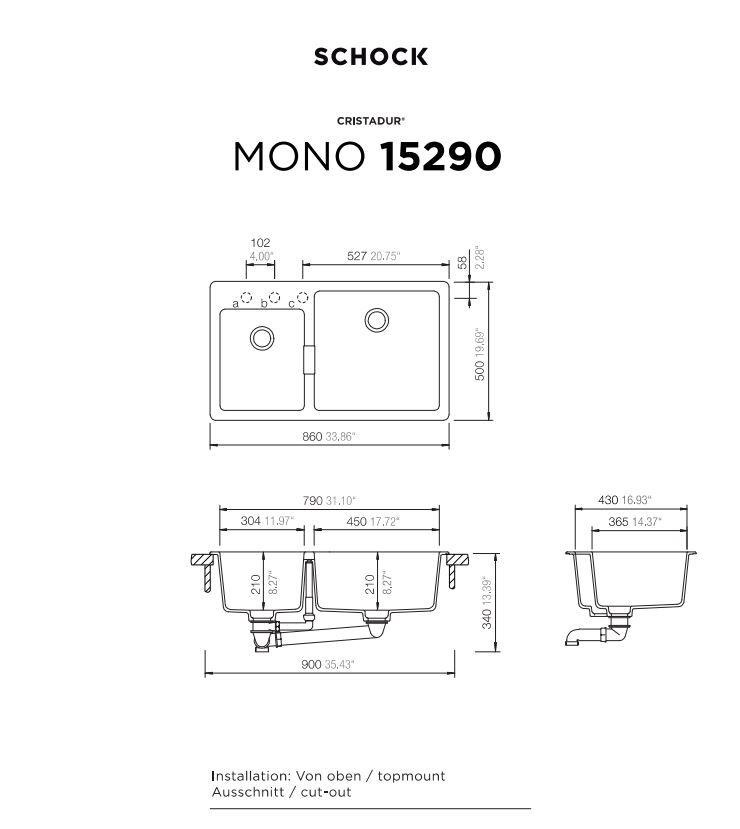 Νεροχύτης Κουζίνας Γρανίτη Mono 86x50 Schock Cristadur Puro Granite 15295-1402