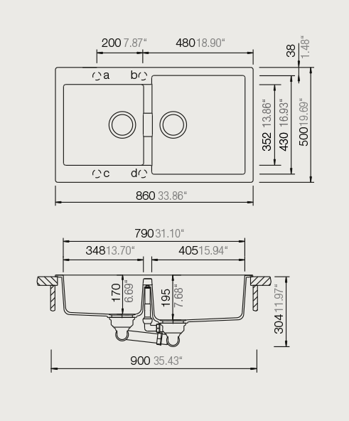 Νεροχύτης Ένθετος 86x50cm Ερμάριο 90cm Γρανίτης Croma Schock Cristalite Manhattan 30290-1441