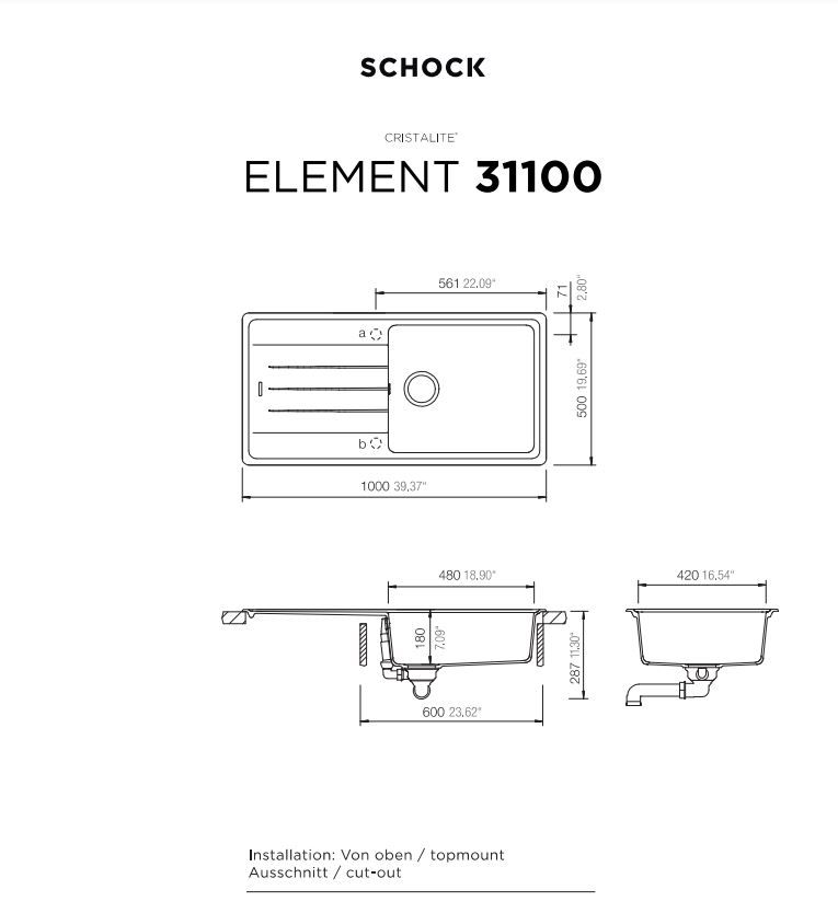 Νεροχύτης Κουζίνας Γρανίτη Element 100x50 Schock Cristalite Concrete Granite 31100-1451