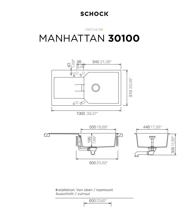 Νεροχύτης Κουζίνας Γρανίτη Manhattan 100x51 Schock Cristalite SuperWhite Granite 30100-1301