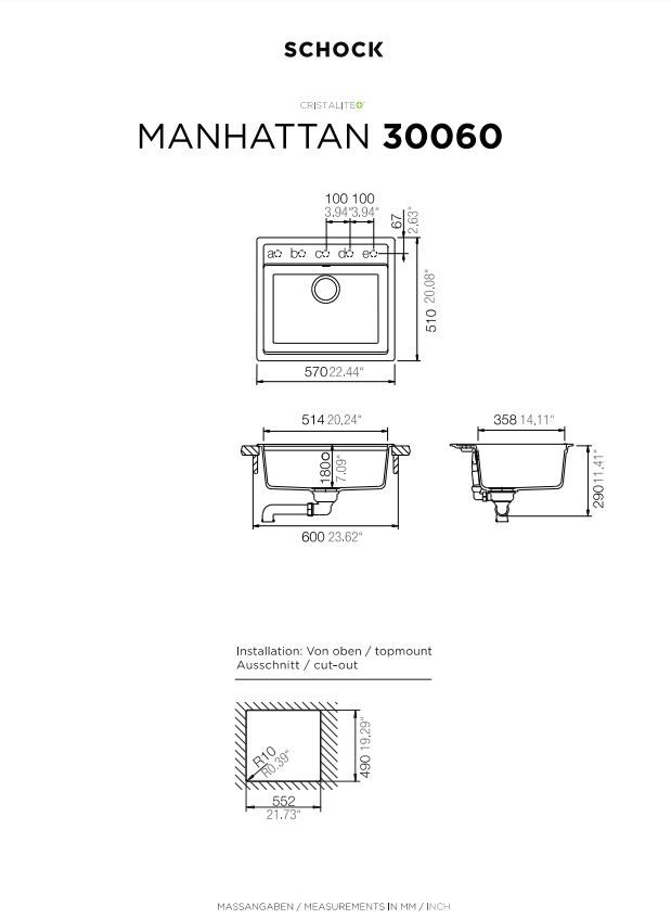 Νεροχύτης Κουζίνας Γρανίτη Manhattan 57x51 Schock Cristalite Croma Granite 30060-1441
